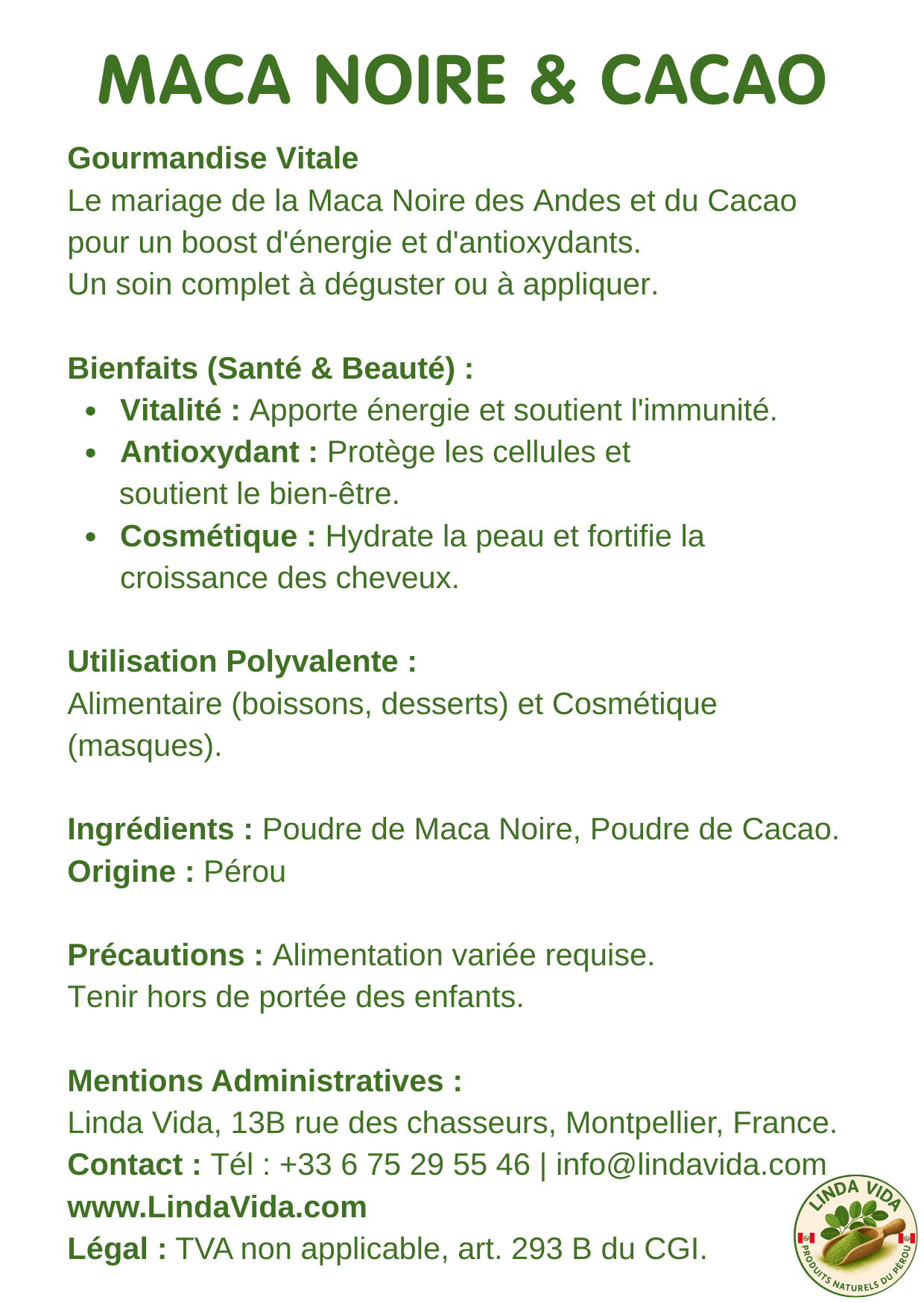 LINDA VIDA - Produits naturels du Pérou